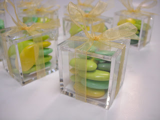 Per ordini entro il 10 Aprile, scatoline in plexiglass cm 6x6 decorate con strass o gessetto profumato, rifinite con nastrino, bigliettino e 12 confetti cioccolato/mandorla a 4.00 euro cad.